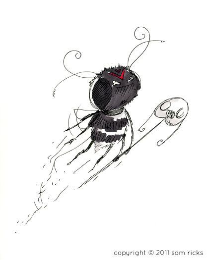 I drew these a few months ago while my students were working. The class' conversation had somehow turned to killer bees. I love the ones with the bones through their noses.